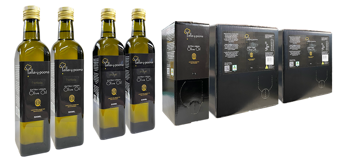 Yalla-y-poora Grove was established in 2001 and obtained full Demeter Bio-Dynamic certification in 2005. Now over 2,700 olive trees typically provide over 30 ton of fruit each year producing around 6,000L of Demeter certified bio-dynamic EVOO. Tree management, olive harvest, extra virgin olive oil processing & bottling is all done on site.